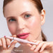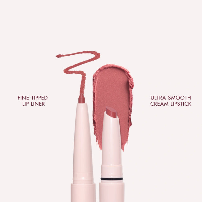 Define lips by tracing your natural lip line with fine-tipped liner. Apply the hydrating lipstick over the lip liner.