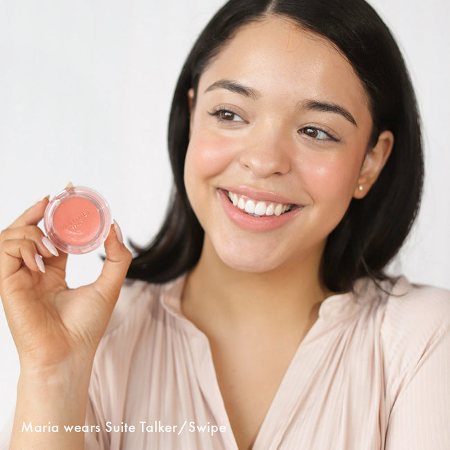 • Tap and blend with fingertips or brush onto lips and cheeks for buildable color