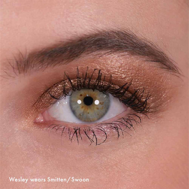 Blend the cream eyeshadow all over the lid, softening as you get to the crease. Press the shimmering shadow onto your lid for the perfect pop.
